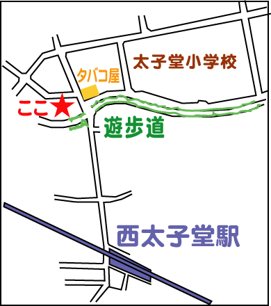 西太子堂駅を右に出て、遊歩道を越えタバコ屋角を左折